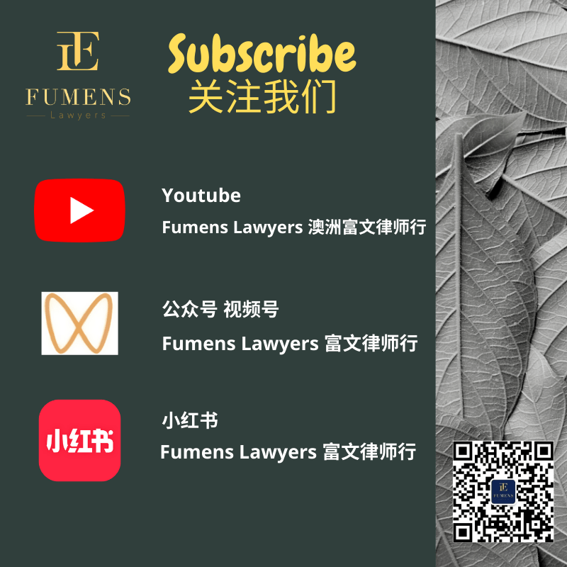 此文章只是作为一般性信息的参考并不适用于阅读者的个案。阅读者不应在没有咨询任何澳洲持牌律师的建议之下, 依赖本文信息而做出任何的法律决定。富文律师行在此声明,参考此文章的阅读者并不构成委托人关系,所以富文律师行也不承担任何因依赖本文而导致的任何损失。