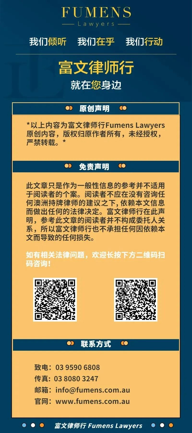 今天的富文小编分享就到这边,欢迎关注富文律师公众号,带你学习更多澳洲法律知识。如果您有这方面的问题,欢迎咨询我们。
